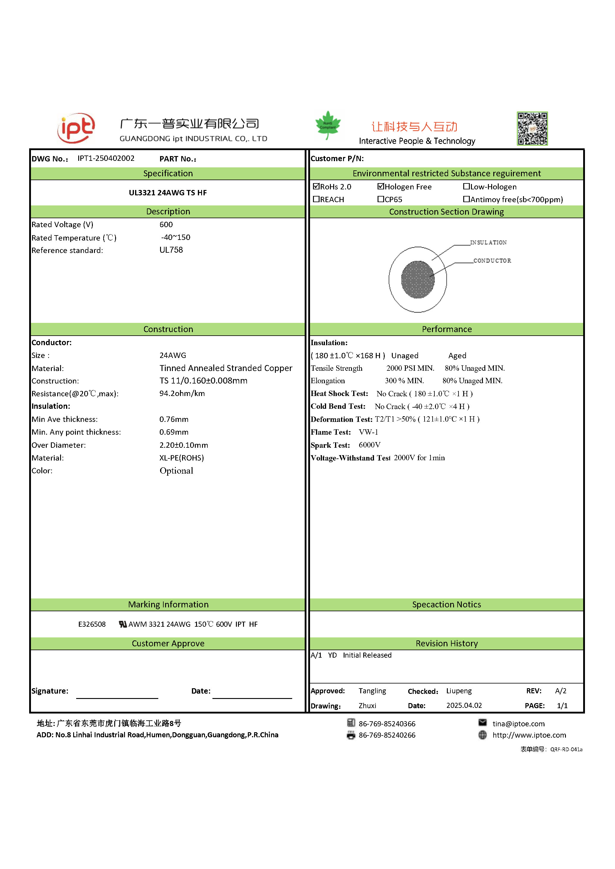 UL3135 12~26AWG TS