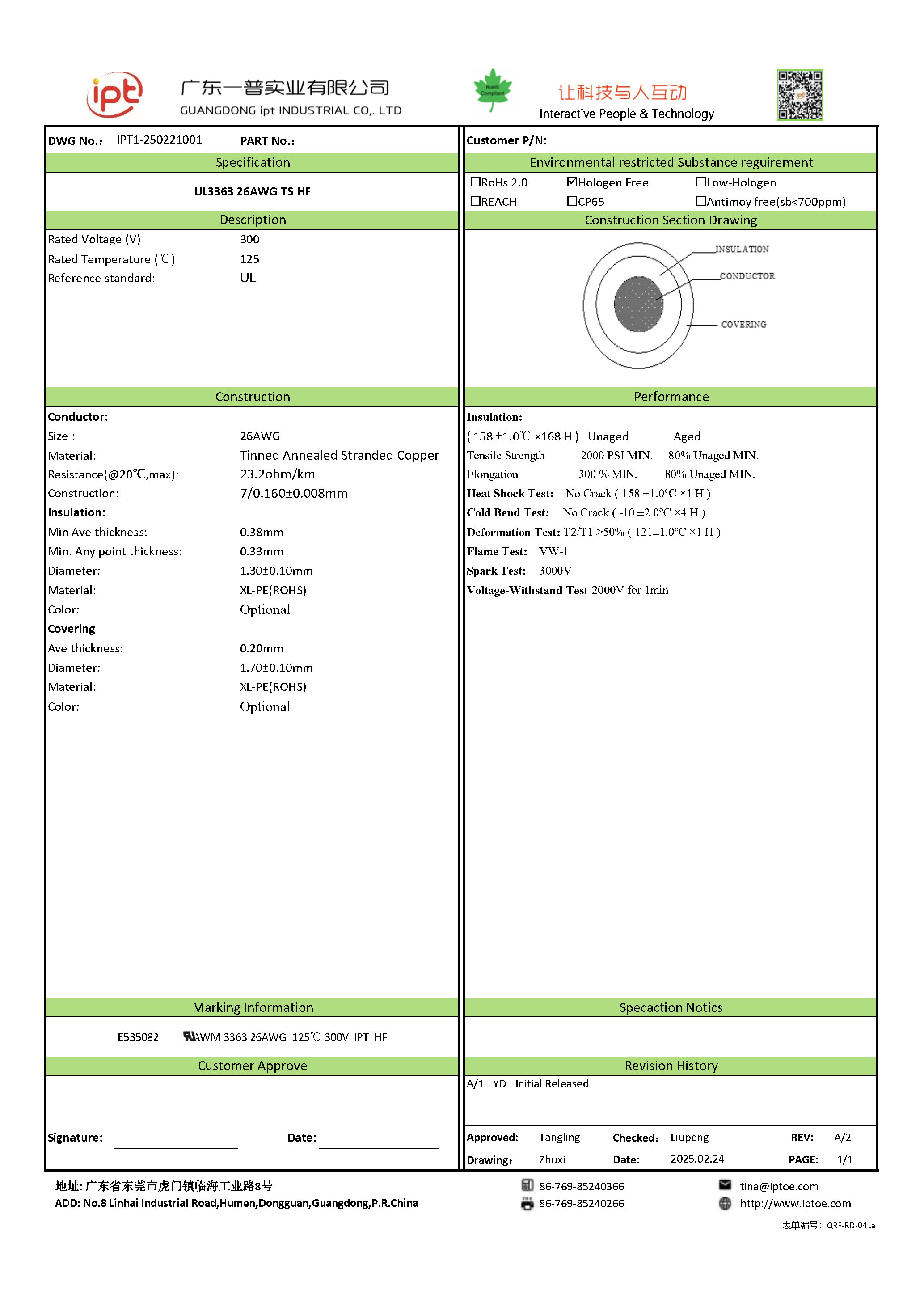 UL3363 26AWG TS HF